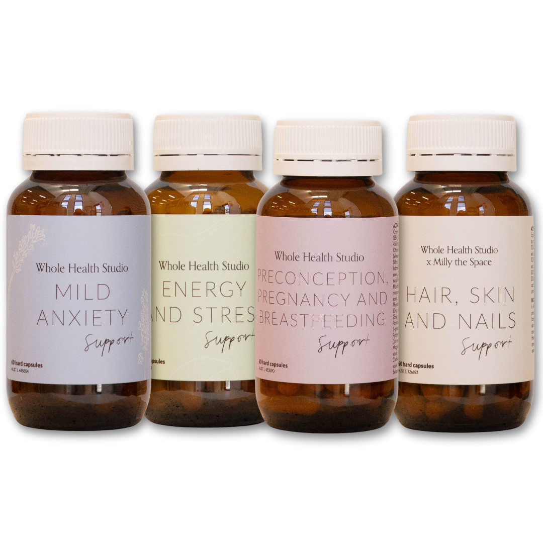This bundle is ideal for mums navigating hormonal shifts, broken sleep, breastfeeding demands, and the overall physical recovery after birth. It supports your body from the inside out- so you can feel more nourished, calm, and supported during this transition.